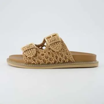 Show more Introducing the perfect summer footwear that redefines comfort and style – these chic sandals are crafted with a woven upper, providing a stylish and breathable look that's ideal for warm weather. Designed for all-day wear, the satin lining ensures that every step is a luxurious experience, making them a must-have for your wardrobe. With adjustable buckled straps, these sandals guarantee a secure fit tailored to your foot, allowing you to walk confidently wherever your day takes you.
