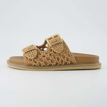 CUSHIONAIRE Women's Weaver Woven footbed sandal with +Comfort, Wide Widths Available, Tan 8.5