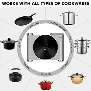 CUSIMAX Electric Hot Plate 1500W Single Burner Cast Iron Hot Plates for cooking Portable Stove Electric Burner with Adjustable Temperature Control Silver Stainless Steel Non-Slip Rubber Feet