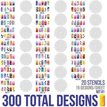 Show moreIntroducing the Custom Body Art Airbrush Nail Stencils - Set #1, a must-have for nail art enthusiasts and professionals alike. This exceptional set includes 20 circle stencil sheets, each boasting an impressive array of 13 different nail art design patterns. With a total of 260 unique designs, you will never run out of inspiration! Each stencil sheet measures at 4.5 inches, perfectly sized for precision application on nails, making it easier than ever to create stunning, professional-looking nail art.