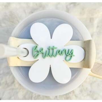 Custom Daisy Stanley Tumbler Name Tag, Personalized Flower's Name Cup Topper Gift, Custom Daisy Name Acrylic Plate For Stanley Lid H2.0 40oz/30oz