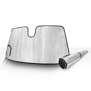 Show more Introducing the custom-fit windshield sunshade, a revolutionary solution expertly tailored to your vehicle's front windshield for unparalleled protection. Made with a commitment to quality in the USA, this sunshade offers complete coverage, effectively shielding the interior of your vehicle from the sweltering heat of summer days. The lightweight, roll-up design facilitates easy storage and maneuverability, ensuring that you can quickly deploy it whenever needed. With its convenient Velcro strap, this sunshade can be stored effortlessly when not in use, making it a practical addition to your car accessories.