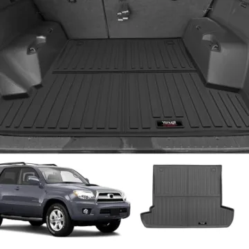 Show more Enhance your driving experience and protect your vehicle's interior with our Custom Cargo Mats, designed specifically for the 2003-2009 Toyota 4Runner. Crafted using the latest 3D laser scanning technology, these mats guarantee a perfect fit, adhering seamlessly to the contours of your trunk. Made from premium Thermoplastic Polyurethane (TPU) material, they provide not just style but real durability, ensuring they withstand daily wear and tear while keeping your cargo area clean and dry. With their impressive heat and cold resistance, you can feel confident that these mats will endure through all seasonal changes, making them the ideal accessory for your adventures.