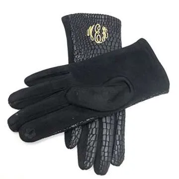 Custom Monogrammed Snake Print Smart Touch Gloves - Black