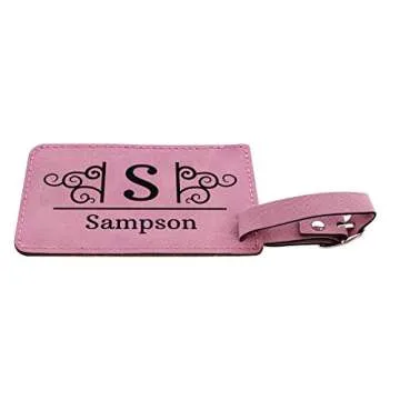 Customized Name and Initial Luggage Tag 2-pack Laser Engraved Leatherette Customized Luggage Tags Pink