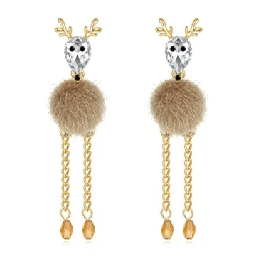 Cute Animal Reindeer Drop Dangle Earrings Christmas Earrings for Women Furry Reindeer Earrings Gifts for Women