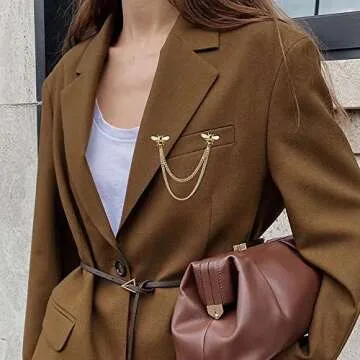 Cute Bee Long Chain Brooch Pin,Animal Insect Bee Chain Tassel Lapel Pin Enamel Bee Suit Pin Jewelry for Women Men Gifts (Bee)