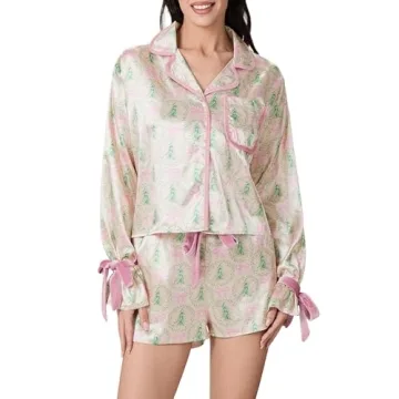 Show more Indulge in comfort and style with our Cute Christmas Pajamas Set for Women. This exquisite two-piece pajama set is crafted from 100% luxurious polyester, featuring a sumptuous silk satin fabric that envelops your skin in a soft embrace, perfect for lounging, sleeping, or daily wear. Designed with both elegance and practicality in mind, the set is ideal for anyone looking to add a touch of festive cheer to their homewear wardrobe. Whether you’re enjoying a cozy evening at home or getting ready for a festive gathering, this pajama set is sure to impress.