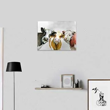 This artwork not only beautifies your space but also infuses it with warmth and personality. Each time you glance at this delightful cow trio, you're invited to smile and feel good—transforming your room into a joyous haven. The perfect blend of humor, quality, and style makes this wall art a favorite for those seeking to evoke joy and charm in their surroundings.