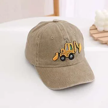 Cute Embroidery Excavator Kids Baseball Cap Adjustable Cotton Washed Vintage Cowboy Hat for Boys Girls Age 2-8 Khaki