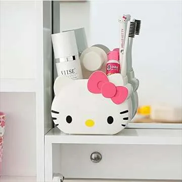Cute Hello Kitty Toothbrush Holders for Bathroom Organizer,Self Adhesive Wall Mounted Shower Caddy,Cute Shower Organizer Shelves for Women Girls Kids Gift, Bathroom Decor/Vanity/Office Storage (Pink)