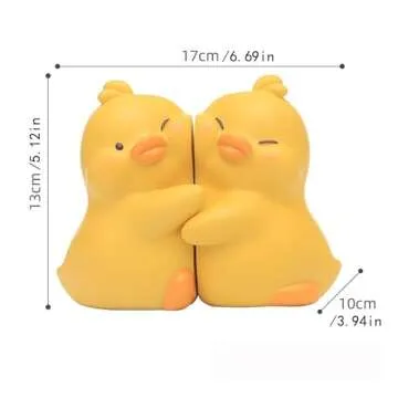 Show more Introducing the Cute Hug Ducks Decorative Bookends—the perfect blend of functionality and whimsy that will transform your bookshelf into a delightful haven! Crafted with precision from high-quality resin, these charming bookends provide robust support that keeps your heaviest books organized and upright. Imagine turning a mundane shelf into a lively display filled with joy every time you pass by these adorable ducks, who are always ready for a hug!