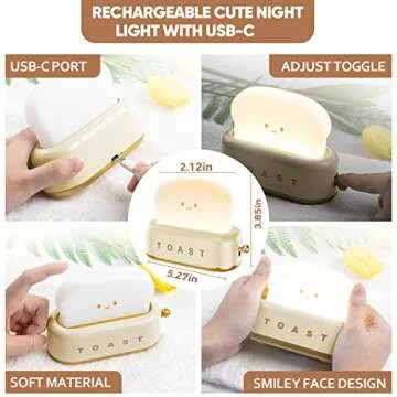 Cute Night Light, Kawaii Toast Night Lamp for Desk Decor, Table, Baby Nursery and Bedroom Room Decor Aesthetic, Dimmable Rechargeable Toaster Bread Lamp Gifts for Teens, Kids, Girls and Boys, Yellow