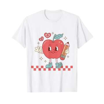 Cute Retro Checkered Apple with Face Teacher Pencil Trendy T-Shirt