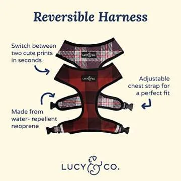 Cute Reversible Dog Harness Walking Halter - Best Designer Pet Harnesses for Medium Dogs - Padded Adjustable Vest for Easy Walking (X-Small, Holly Jolly)