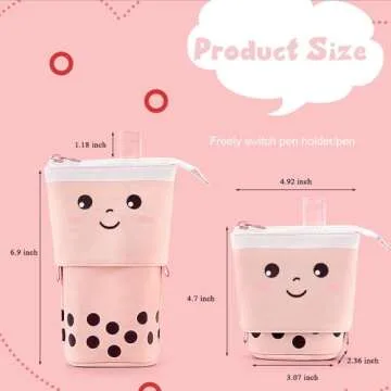Cute Standing Pencil Case for Kids, Pop Up Pencil Box Makeup Pouch, Christmas Gift Kids Corduroy Pen Holder Organizer Cosmetics Bag, Kawaii Stationary (Pink)