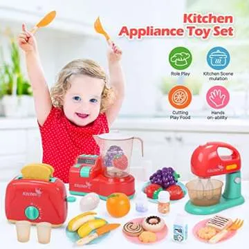 The realism doesn't just stop at the appearance! Whether it's the mixer with its rotating whip, the toaster that includes a timed pop-up feature, or the blender that actually rotates, every piece is crafted to replicate real appliances. This immersion in pretend play develops crucial creativity and problem-solving skills in children. This fantastic set will not only engage their interest but also encourage teamwork and cooperation during group playtime.