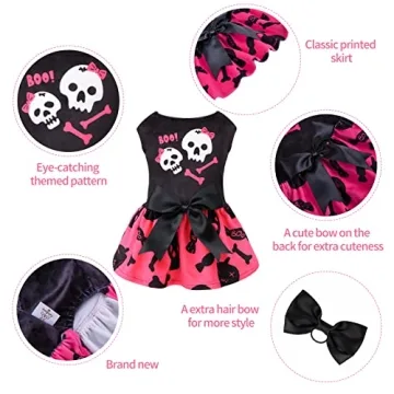 Show moreIntroducing the CuteBone Halloween Skulls Dog Dress, a must-have outfit to make your furry friend the star of any occasion! Crafted from 100% soft, lightweight, and stretchy velvet material, this dress ensures unmatched comfort and breathability for your pet, making it perfect for year-round wear. With a charming pink design decorated with playful skulls, your small dog will look both adorable and stylish, turning heads wherever you go. The pullover design allows for easy dressing, so your pup can get ready for parties or casual outings in no time. Plus, each dress comes with a matching bow hair rope, transforming your dog into a delightful little princess!