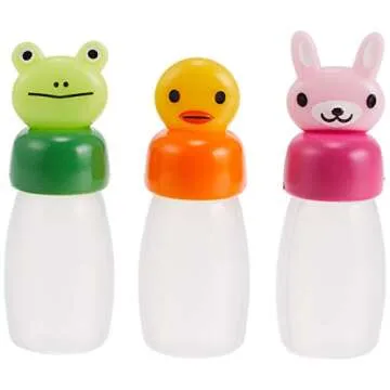 CuteZCute Bento Soy Sauce Case Container Set with Funnel, 3 Bottles (5ml Each), 1 Funnel, 1 Stand, Multicolor, 2" L x 0.5" H, Playful, Whimsical