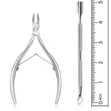 Cuticle Trimmer with Cuticle Pusher - Cuticle Remover Cuticle Nipper Professional Stainless Steel Cuticle Cutter Clipper Durable Pedicure Manicure Tools for Fingernails and Toenails - Half Jaw