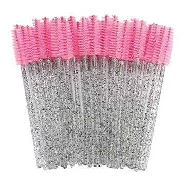 Cuttte 100pcs Disposable Mascara Brushes Wands with Container, Crystal Eyelash Spoolie Brushes for Eyelash Extensions and Mascara Use