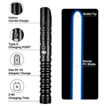 When compared to other lightsabers on the market, the CVCBSER FX Dueling Lightsaber stands out due to its combination of premium aluminum hilt construction and realistic sound effects. Many competitors offer similar products but fall short on delivering the immersive experience, durability, and versatility offered by this lightsaber. Its 16 color settings allow for unmatched customization, making every duel unique, while competitors often limit users to fewer than five preset colors. The motion control feature enhances playing experience significantly, ensuring that you won’t just swing a plastic stick but truly engage in a dueling experience.