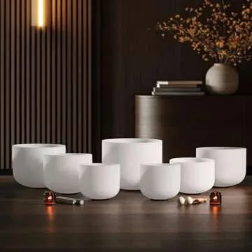 CVNC 432HZ 7-12 Inch Set of 7 Pcs Frosted Quartz Crystal Singing Bowls Set with 2 Pcs Carry Case Bags for Sound Healing Meditation