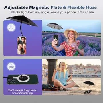 Show moreIntroducing the CxStarLiCU Magnetic Phone Umbrella for Sun, the perfect accessory for your iPhone 15, 14, 13, and 12 series devices. This innovative sunshade is designed with a robust magnetic ring that offers a secure attachment to the back of your phone, ensuring it stays in place even under the harshest sunlight. Whether you're lounging on the beach, enjoying a picnic in the park, or simply taking your phone outside, this umbrella helps maintain a clear view of your screen by blocking out glaring sunlight. Don't let the sun spoil your outdoor experience!