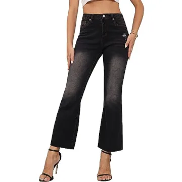 Trendy CXXQ High Waisted Ripped Flare Jeans for Women, Stylish Black Bell Bottoms