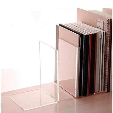 CY craft 6 Pieces/3 Pairs Bookends,Clear Acrylic Bookends for Shelves,Heavy Duty Book Ends and Desktop Organizer,Book Stopper for Books/Movies/CDs,7.3x4.8x4.8 inch