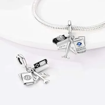 CYCUFF 925 Sterling Silver Charms for Bracelets and Charm Necklaces, Bracelet Pendants Beads Jewellery Gift for Family Friends Women (Camera Passport Airplane Charm)