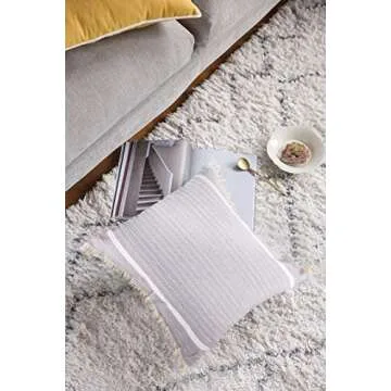 Show moreUnveil the perfect blend of comfort and style with the Cygnus 18x18 Inch Gray Woven Throw Pillow Covers. Crafted with care, these accent pillow covers are not just ordinary covers; they mirror sophistication with their elegant linear striped design and charming tassels. Made from high-quality materials, they are robust and durable, making them an excellent addition to any couch or sofa in your living room, bedroom, or any cozy corner of your home. Transform your space instantly and let your home resonate with bohemian vibes!
