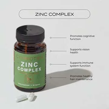 Show more Discover the incredible benefits of our Zinc Complex from Cymbiotika, a powerful zinc supplement designed for optimum health and robust immune support. This unique formula boasts a blend of three forms of zinc—Zinc Picolinate, Zinc Monomethione, and Sucrosomial Zinc—paired with the essential minerals copper and selenium, all powered by clinically-backed absorption technology that sets it apart from typical zinc supplements.