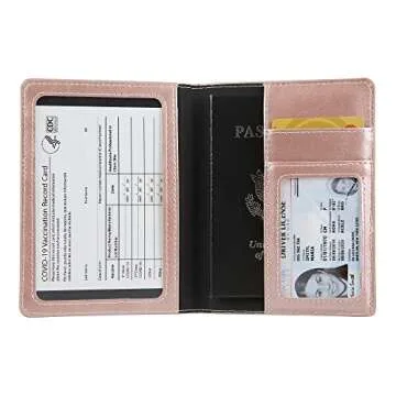 Cynure Leather Passport Cover CDC Vaccine Card Holder Combo Men & Women Travel Passport Case, rose gold