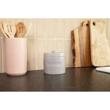 CYPRESS SUNRISE Bacon Grease Saver with Strainer - 32oz Ceramic Container for Kitchen Holds Bacon Fat Drippings Oil for Reuse - Keeper Can Hold Cooking Frying Oil - Dishwasher Safe
