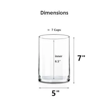 Elevate your decor with the exquisite CYS EXCEL Glass Cylinder Vase, standing at a height of 7 inches with a diameter of 5 inches. This beautiful centerpiece is not just a vessel but an artistic statement, meticulously crafted from hand-blown crystal clear glass. Unlike machine-made options, each piece showcases unique character and exquisite clarity, allowing the beauty of your flowers or candles to shine through. The thick glass and stable bottom ensure...
