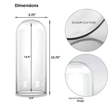 CYS EXCEL Glass Dome Cloche (H:13.75" D:5.75") | Multiple Sizes Decorative Showcase Display for Antique Collectibles | Bell Jar Terrarium & Dessert Cover