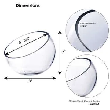 CYS EXCEL Glass Slant Cut Bubble Bowl (H-7" W-8") | Multiple Size Choices Slanted Globe Bowl Terrarium | Round Flower Vase Centerpiece