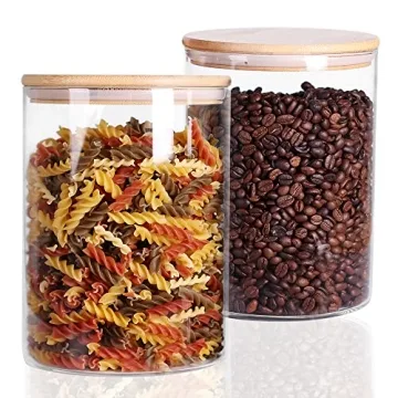 CZFWin 2-Piece Glass Flour Container Set with Bamboo Lid for Kitchen Organization