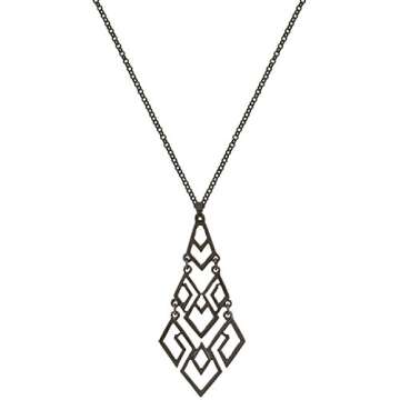 D EXCEED Women's Cutout Diamond Chandelier Pendant Necklace 30" + 3" Extension (Necklace/Hematite)