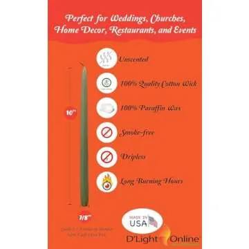D'light Online Elegant 10" Olive Green Taper Candles Premium Quality Candles, Unscented, Hand-Dipped, Dripless and Smokeless Taper Candles - Individually Wrapped (10 Inch, Basil)