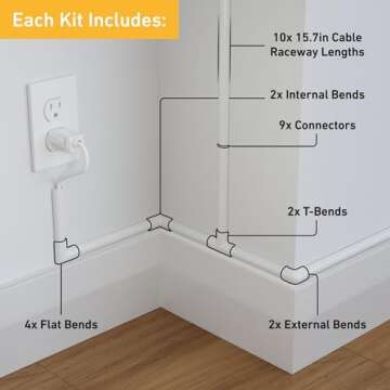 Each multipack comes with 10 lengths of cable cover measuring 15.7 inches each, providing a total coverage of 157 inches. The inclusion of 19 accessories makes it versatile for managing cords around corners, bends, and various configurations. Crafted from high-quality materials, the D-Line cable cover is easy to paint – simply sand the surface before applying your favorite color to perfectly match your walls.