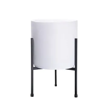 D'vine Dev Contemporary White Cylinder Planter with Metal Stand
