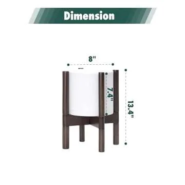 Show more The 8 Inch Pot with Stand Set is a stunning addition to any home, providing both style and functionality. This set features a beautifully crafted planter that measures a generous 8 inches in diameter and 7.4 inches in height, perfectly paired with a solid wood stand that elevates the total height to an impressive 13.4 inches. Designed for modern aesthetics, this minimalist plastic planter showcases a sophisticated cylinder shape that effortlessly complements any home decor. Whether your preference is for real or faux plants, this planter highlights your greenery beautifully, adding a pop of nature to your space.