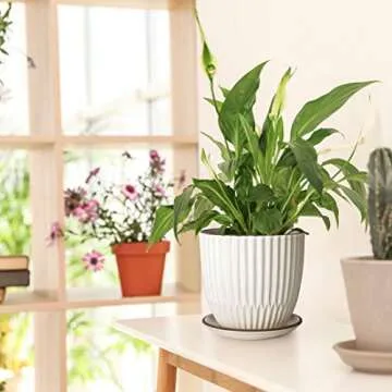 D'vine Dev Set of 2 Stoneware Planter Pots, Ceramic Pot with Drainage Hole and Saucers, 4.5 Inch 5.8 Inch, Ivory, 99-D-1