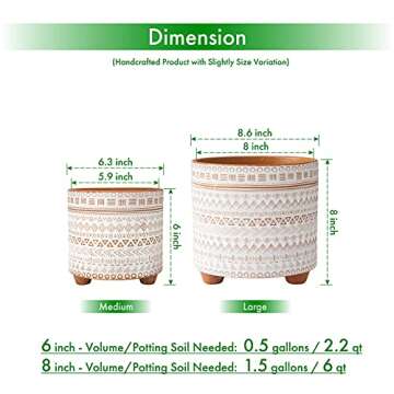D'vine Dev Set of 2 Terracotta Planter Pots, 6 Inch & 8 Inch, Elegant Geometric Design
