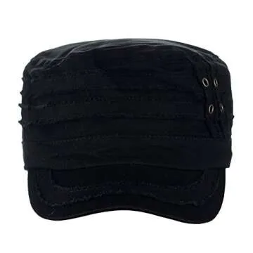 D&Y Unisex Cotton Distressed Layered Frayed Cadet Military Cap, Black
