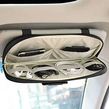 Da by Car Sun Visor Organizer, Multi-Pocket Visor Organizer Storage Pouch for Cars, SUVs & Trucks with Double Zippers, Elastic Bands & Glasses Clip - Organizes Essentials Keep Tidy (Black)