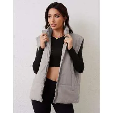 Daacee Women's Oversized Puffer Vest Lightweight Warm Cap Sleeve Puffy Bubble Outerwear Vests with Pockets(0650-Grey-S)