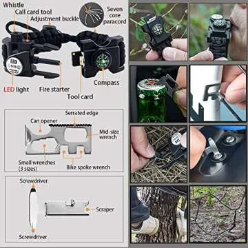Daarcin Survival Paracord Bracelet,Fire Starter,Waterproof SOS Light, Compass, Whistle, Adjustable AK87 20 in,Stocking Stuffers,Outdoor Ultimate Tactical Survival Gear Set,Men
